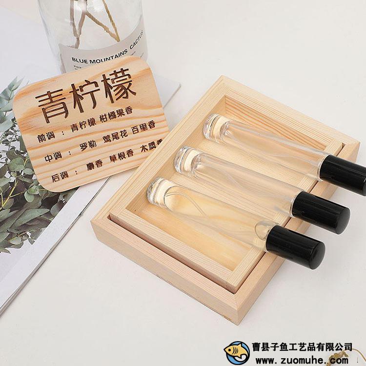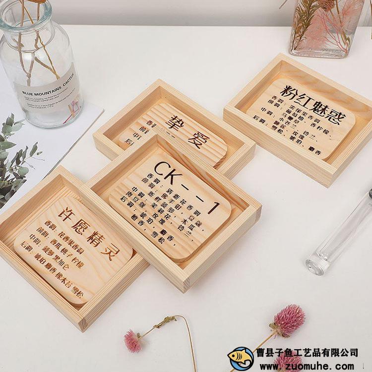 當(dāng)前位置:首頁(yè) > 木制包裝盒 > 小樣香水木片夜市擺攤顯示用的香水木盒展示招牌加工定做
